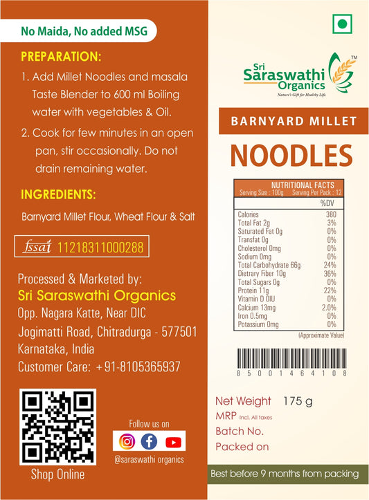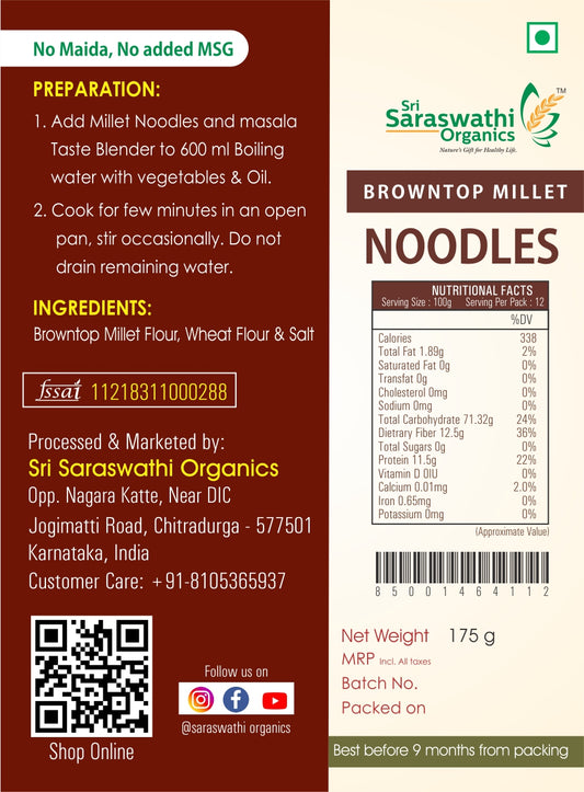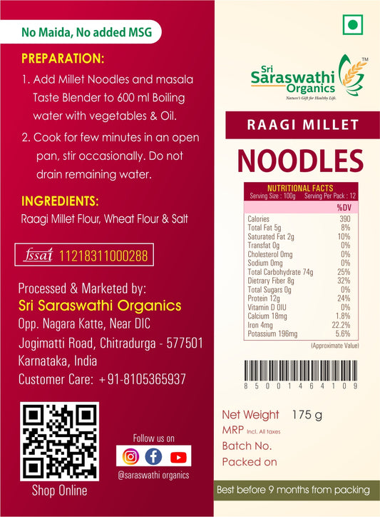 At Sri Saraswathi Organics, millet noodles are prepared using carefully sourced millets and processed without artificial colours, flavour enhancers, or chemical preservatives. These noodles are ideal for quick meals while supporting healthier eating habits.