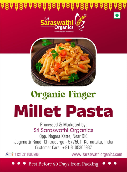 At Sri Saraswathi Organics, our Millet Pasta is made from carefully sourced organic millets, processed traditionally without chemical additives or preservatives. Each pasta variety embraces the natural goodness of millets, offering you an easy way to enjoy balanced nutrition in every bowl from classic pasta dishes to creative millet noodles.